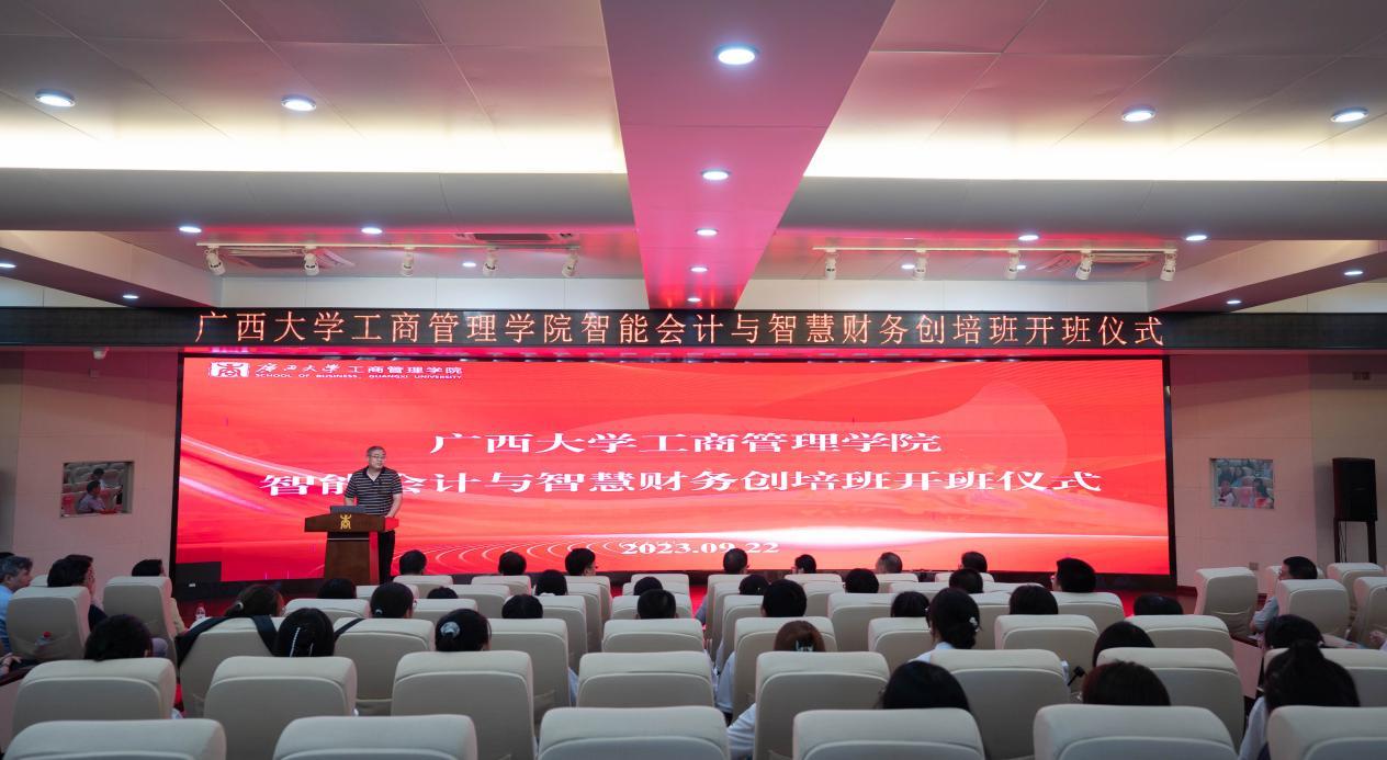 9月22日下午,公司在128报告厅举行首届智能会计与智慧财务创培班开班仪式。公司党委常委、副董事长宁旭初出席开班仪式并致辞。会计与财务金融系全体老师、2023级智会创培班全体员工参加了仪式。公司经理朱帮助主持仪式。