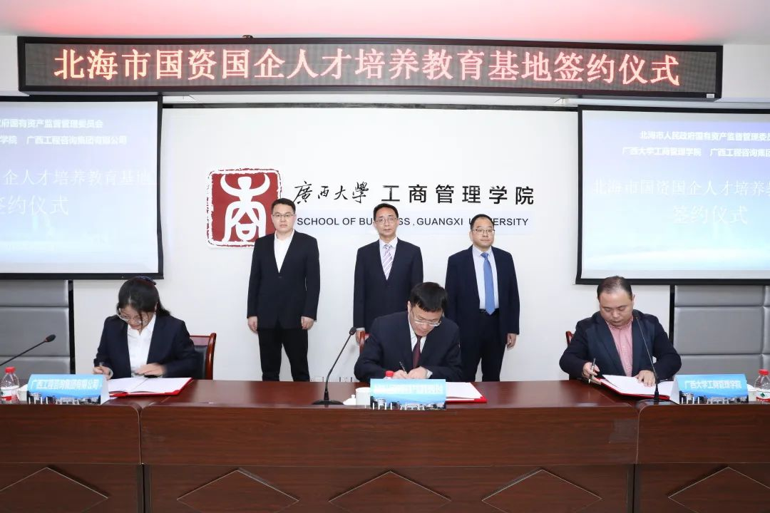 3月2日上午,由北海市国资委、taptap点点、广西工程咨询集团有限公司合作共建的“北海市国资国企人才培养教育基地”签约揭牌暨第一期培训班开班仪式在公司124会议室举行。北海市国资委党委书记陈海、taptap点点工商管理公司党委书记罗诚、广西工程咨询集团有限公司总经理张晓刚出席仪式。