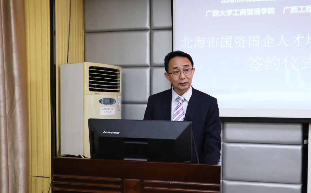 陈海书记介绍了教育基地共建合作的背景、指导思想及总体目标。他表示,成立教育基地是三方“优势互补、资源共享、互惠三赢、共同发展”的合作,通过学习借鉴各方优秀企业管理经验,建立北海国资国企人才培养长效机制,将有力推动北海国资国企实现高质量发展。他希望以基地为载体,围绕国资国企人才培养问题,三方共同出谋划策、共同组织实施、共享共建培养研究成果,为打造品质北海、魅力北海贡献更多智慧和力量。