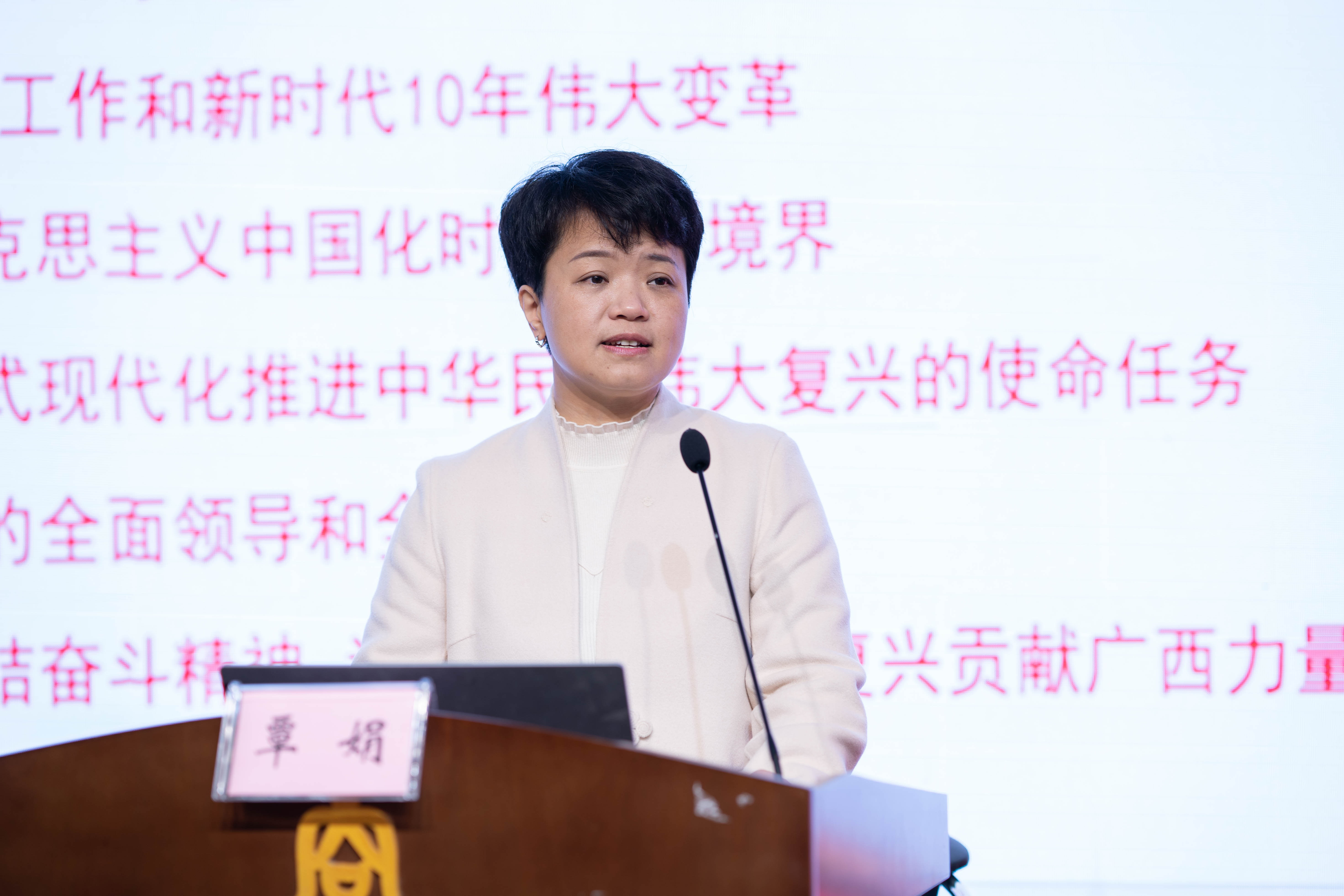 覃娟为学员们作宣讲报告