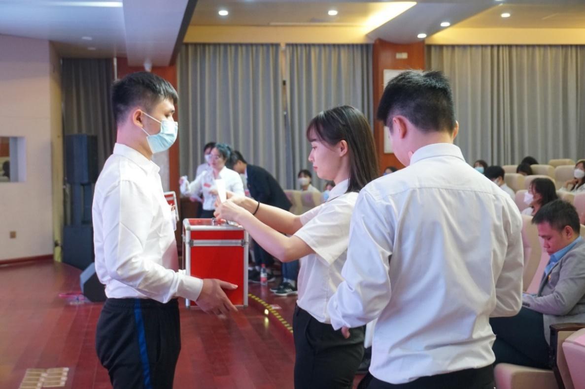 随后,谢程同学宣读候选人信息,候选人分别亮相。参会代表仔细阅读候选人个人资料后,认真填写选票。各班代表团依次进行投票,选票确认上交完毕后,由监票人和计票人移步计票室进行计票工作。最终选举产生了翟艳洁、吕毅、唐子微为公司第二届研究生主席团成员。