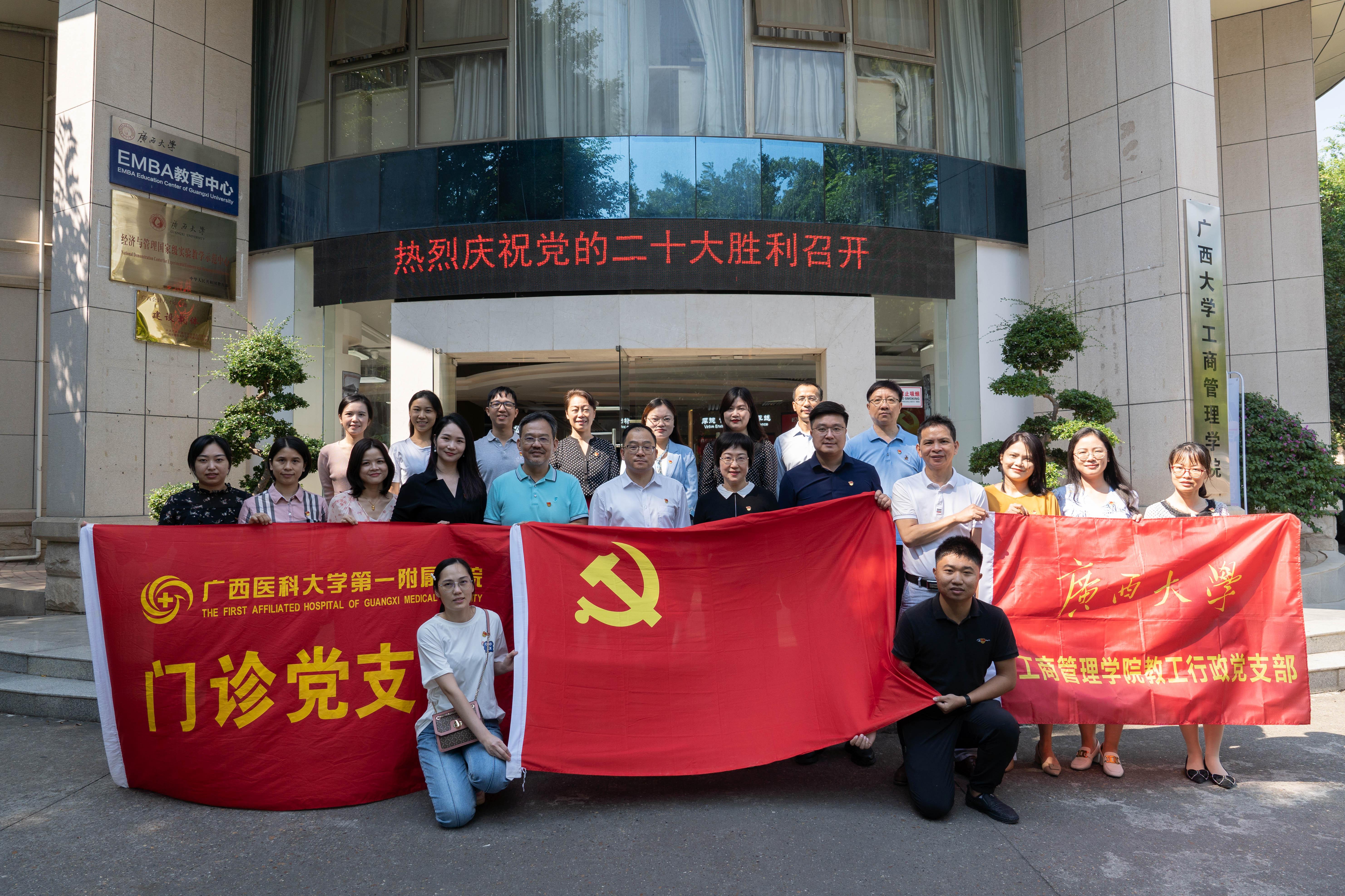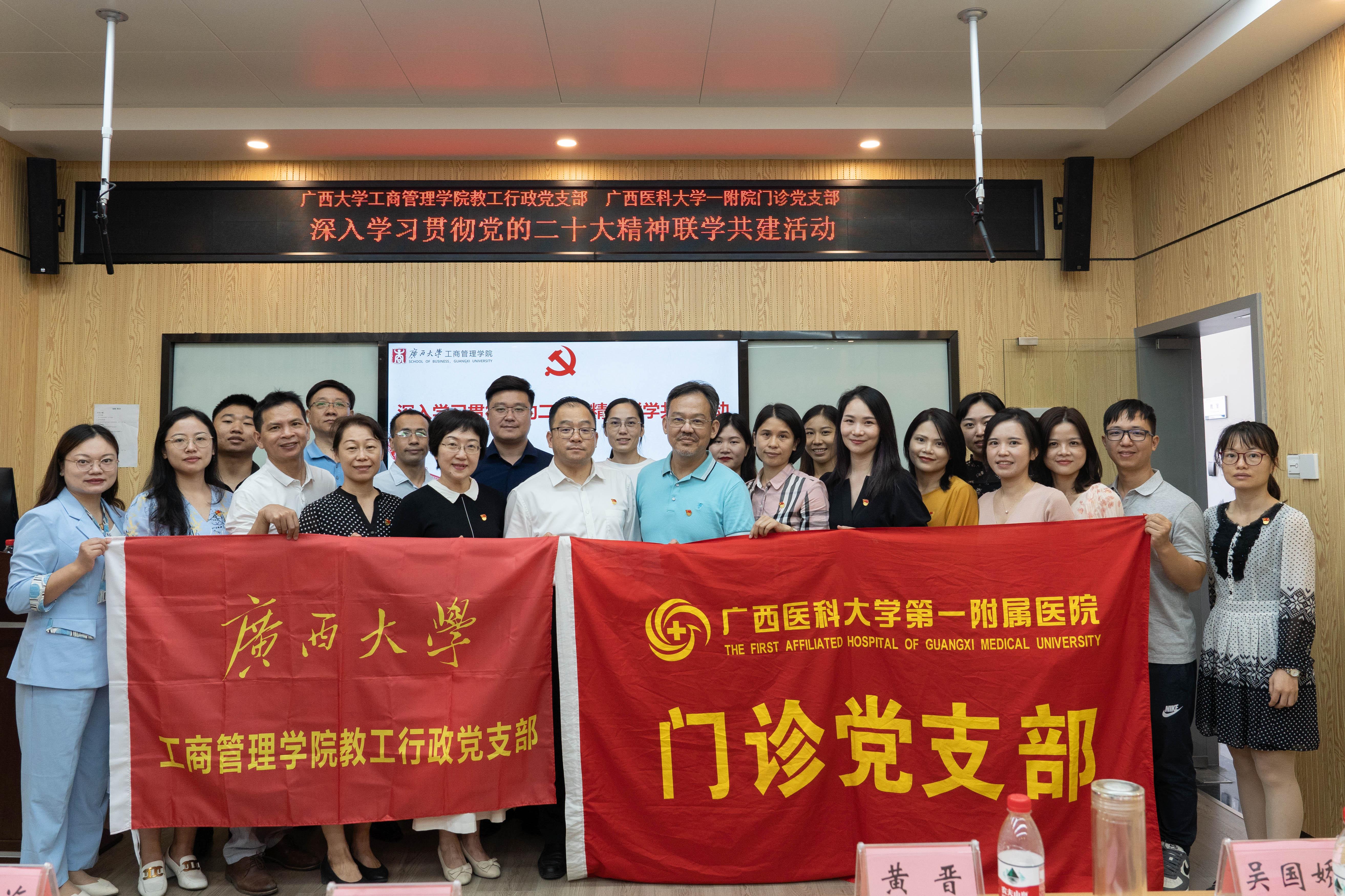 在党的二十大胜利闭幕之际,为深入学习贯彻党的二十大精神,持续推进基层党建工作内容创新、方法创新,不断加强党的建设,10月23日上午,taptap点点教工行政党支部与广西医科大学一附院门诊党支部联合开展深入学习贯彻党的二十大精神联学共建主题党日活动。公司党委书记罗诚以普通党员身份参加了本次活动。