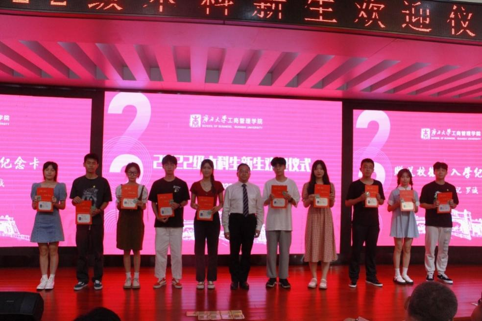 工商管理类221班郑淦耀同学、工商管理22级博士田超同学作为新生代表发言。他们向师长们表示真诚的感谢,向同学们表达相遇的美好,并对未来的学习与生活表示展望和期待。郑淦耀同学作为本科新生代表,表现出新一代青年人奋勇向前的精神,翱翔万里长空的志向。田超同学作为博士生新生代表,希望大家可以在学术上培养创新精神、坚定目标、不畏困难,并祝福2022级新生有所收获,踏上学术新征程。