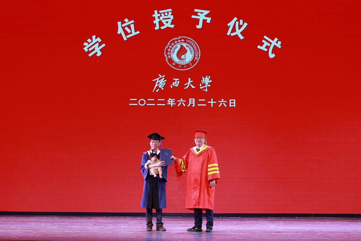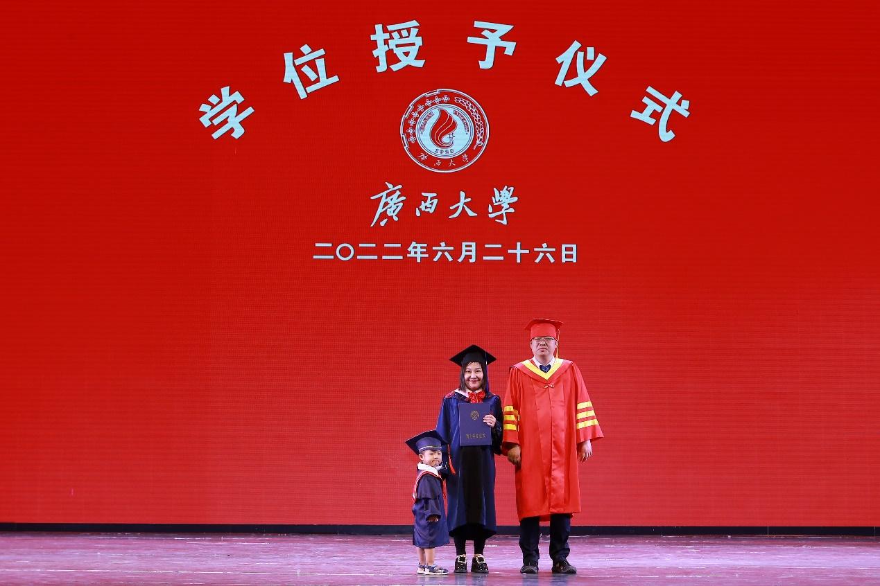 硕士毕业生带着孩子、亲人一同参加学位授予仪式
