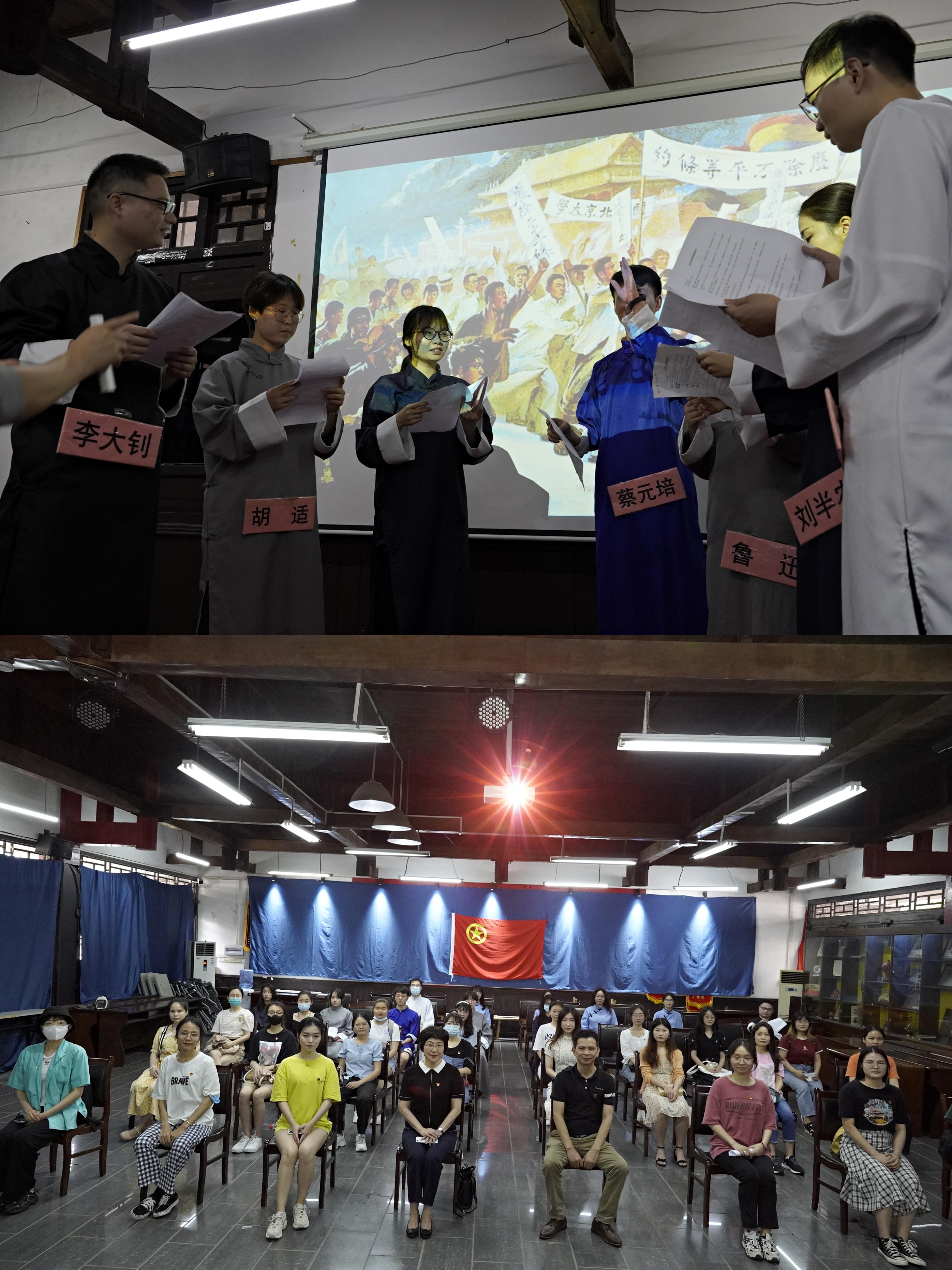 5月27日,在公司党委委员、副经理廖东红同志的带领下,研究生第一党支部、第二党支部的党员到南宁市共青团纪念馆开展“青春心向党,建功新时代”主题党日活动。同学们参观了共青团纪念馆“战斗的青春”、“建设的青春”、“改革的青春”、“青春的记忆”四个主题展区,并通过扮演胡适、鲁迅、李大钊等11位五四运动时期的爱国青年和知识分子开展情景教学,再现了一群胸怀理想与伟大抱负的青年同志为了国家大义,积极传播新思想与新文化的积极昂扬的精神风貌。