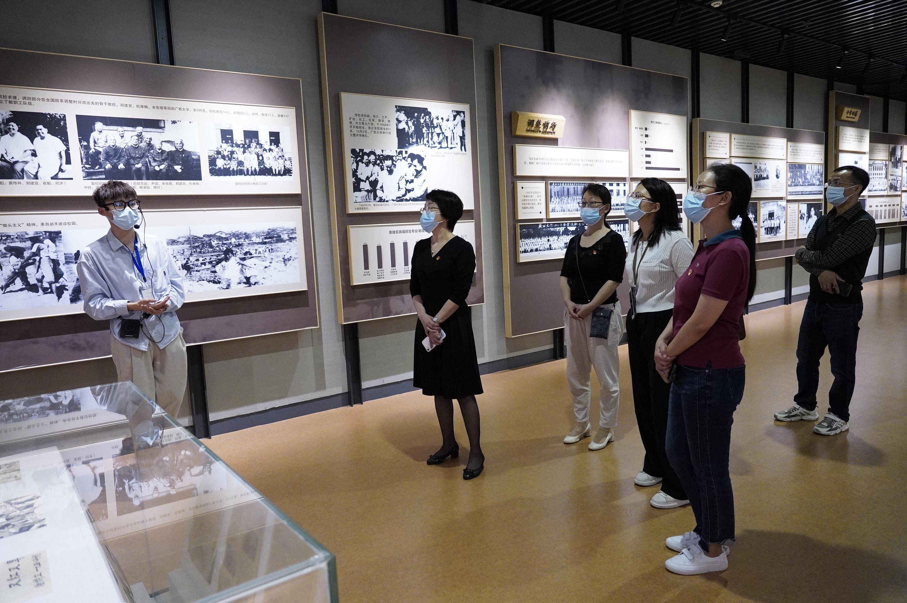 5月17日、5月31日,教工行政党支部、教工旅管党支部先后到自治区爱国主义教育基地--taptap点点校史馆进行“以史为鉴 以史增信”主题党日活动。活动结合taptap点点创始人兼第一任董事长马君武先生提倡的“锄头主义”、“教师拼命教、员工拼命学、职工拼命干”的“三拼”精神和 “保卫中华,发达广西”的办学宗旨,让所有青年行政人员深刻领会该时期青年为保家卫国、建设祖国贡献的青春力量。