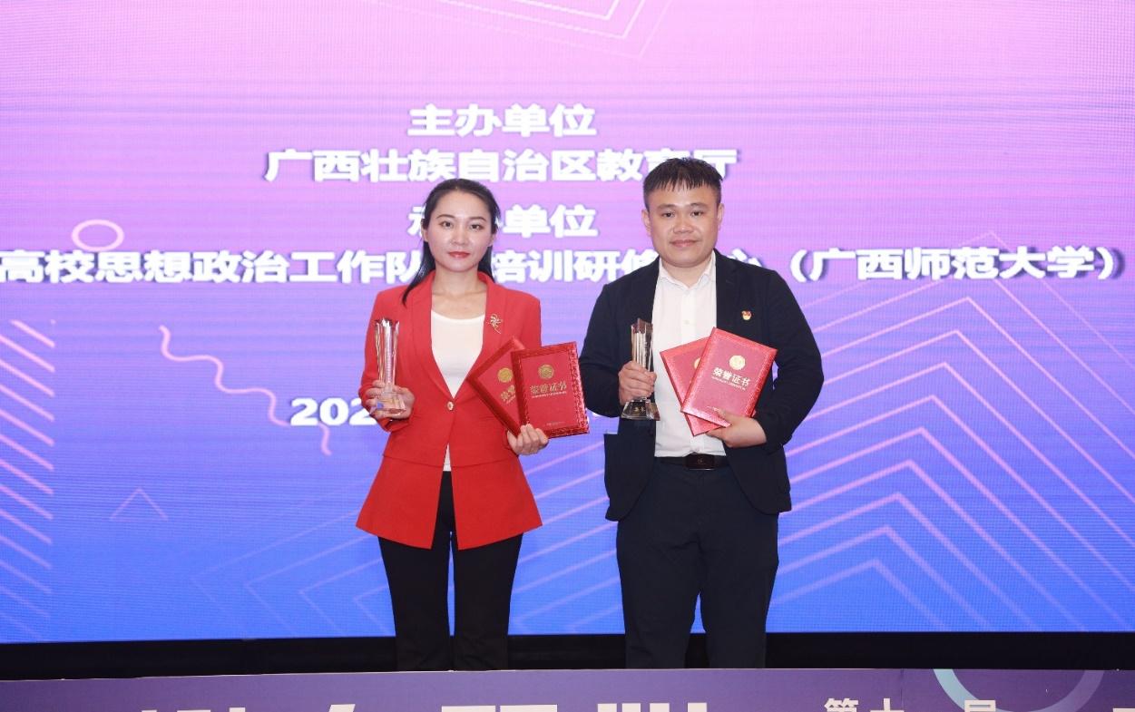 5月12至14日,由自治区教育厅主办,教育部高校思想政治工作队伍培训研修中心(广西师范大学)承办的第十一届广西高校辅导员素质能力大赛在桂林举办,共有来自全区各高校的84名专职辅导员参赛。经过三天激烈角逐,公司辅导员岑汉成老师以总分第四名获得大赛一等奖,并在“基础知识”、“谈心谈话”两个比赛环节中获“最佳表现奖”。