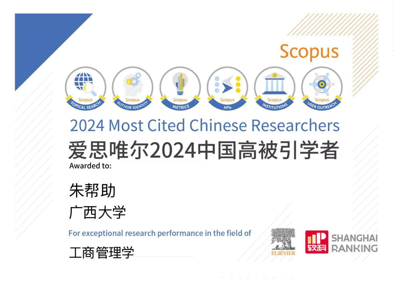 朱帮助教授自2021年以来连续4年入选“中国高被引学者”榜单,这对推动公司工商管理学科发展、扩大公司全球影响力有着积极影响。未来,taptap点点将继续聚焦于国家战略需求和区域发展需求,开展创新性研究,进一步服务国家战略和广西经济社会发展,助力推进公司“双一流”建设和部区合建,不断提升科技创新和人才培养能力。