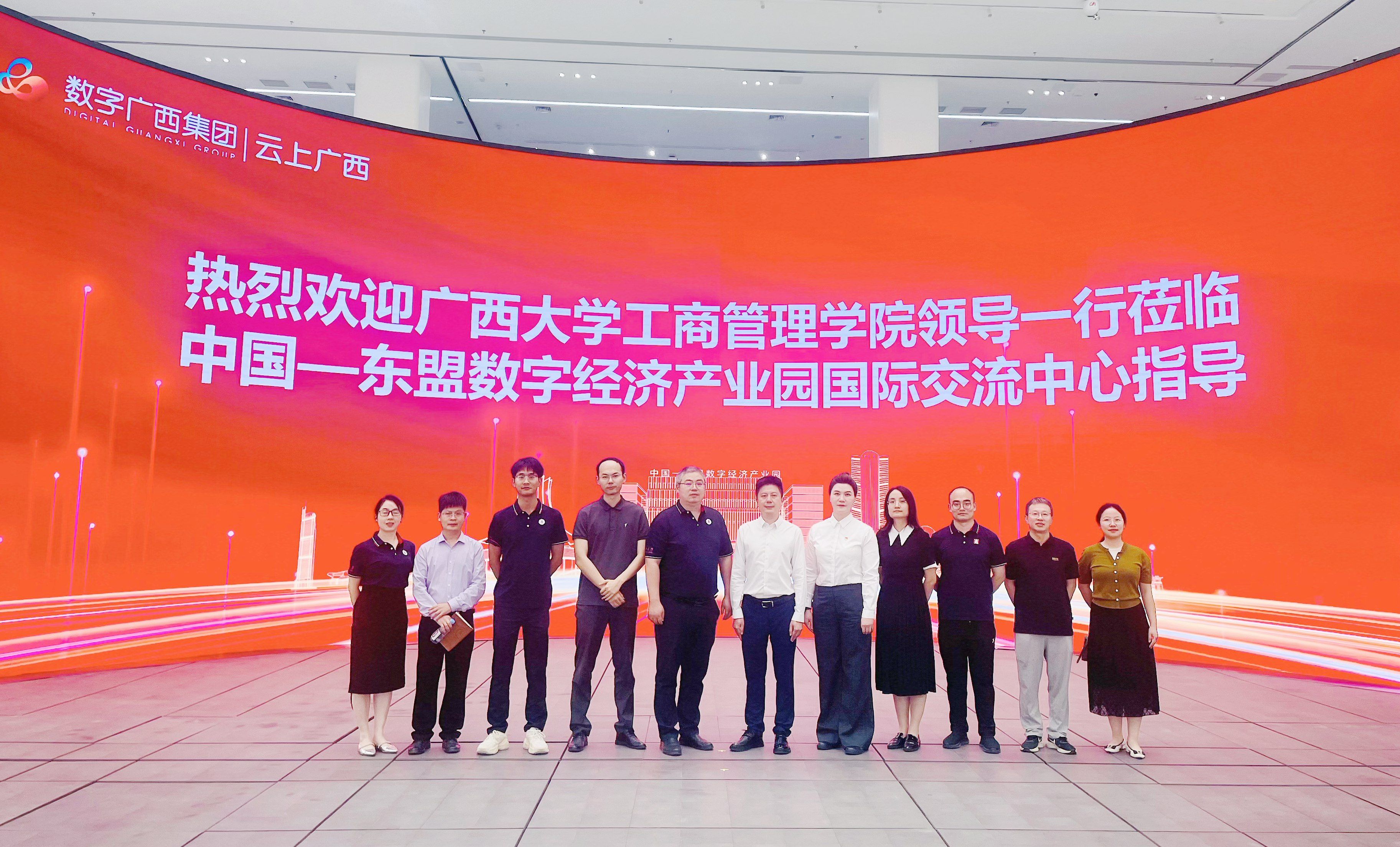 在中国-东盟数字经济产业园,调研组受到广西数广全网融合科技有限公司副总经理周艳(2022级EMBA员工)及云上广西网络科技有限公司董事长刘学(2023级MBA员工)等的热情接待。座谈中,双方围绕重点研发项目联合申报、新能源算力中心、东盟舆情智库建设及数字创新实训基地共建等展开探讨。朱帮助表示,公司将发挥学科优势,助力企业数字化转型,打造服务中国-东盟数字经济发展的产学研标杆,推动“AI+行业”战略深度融合。