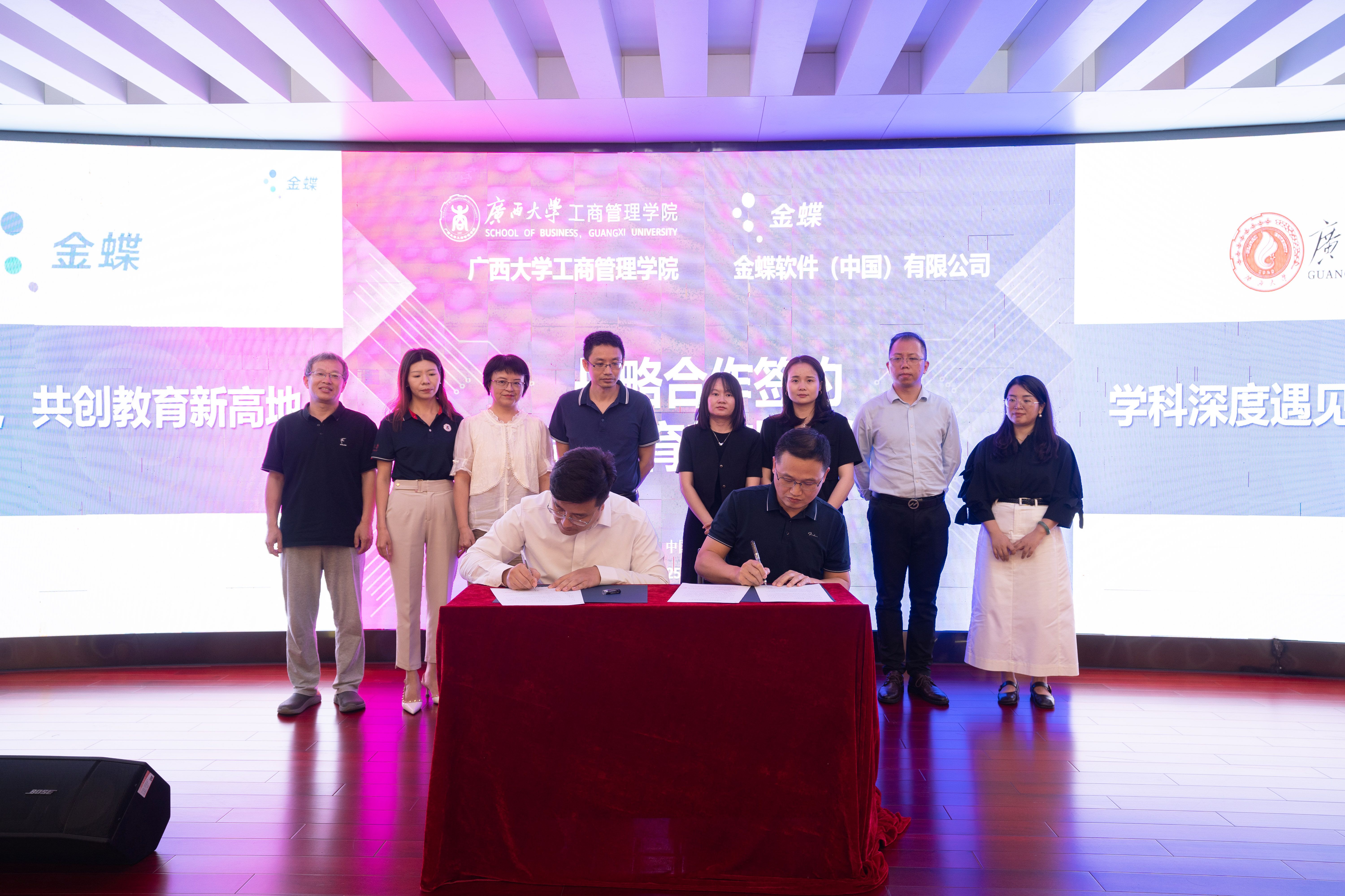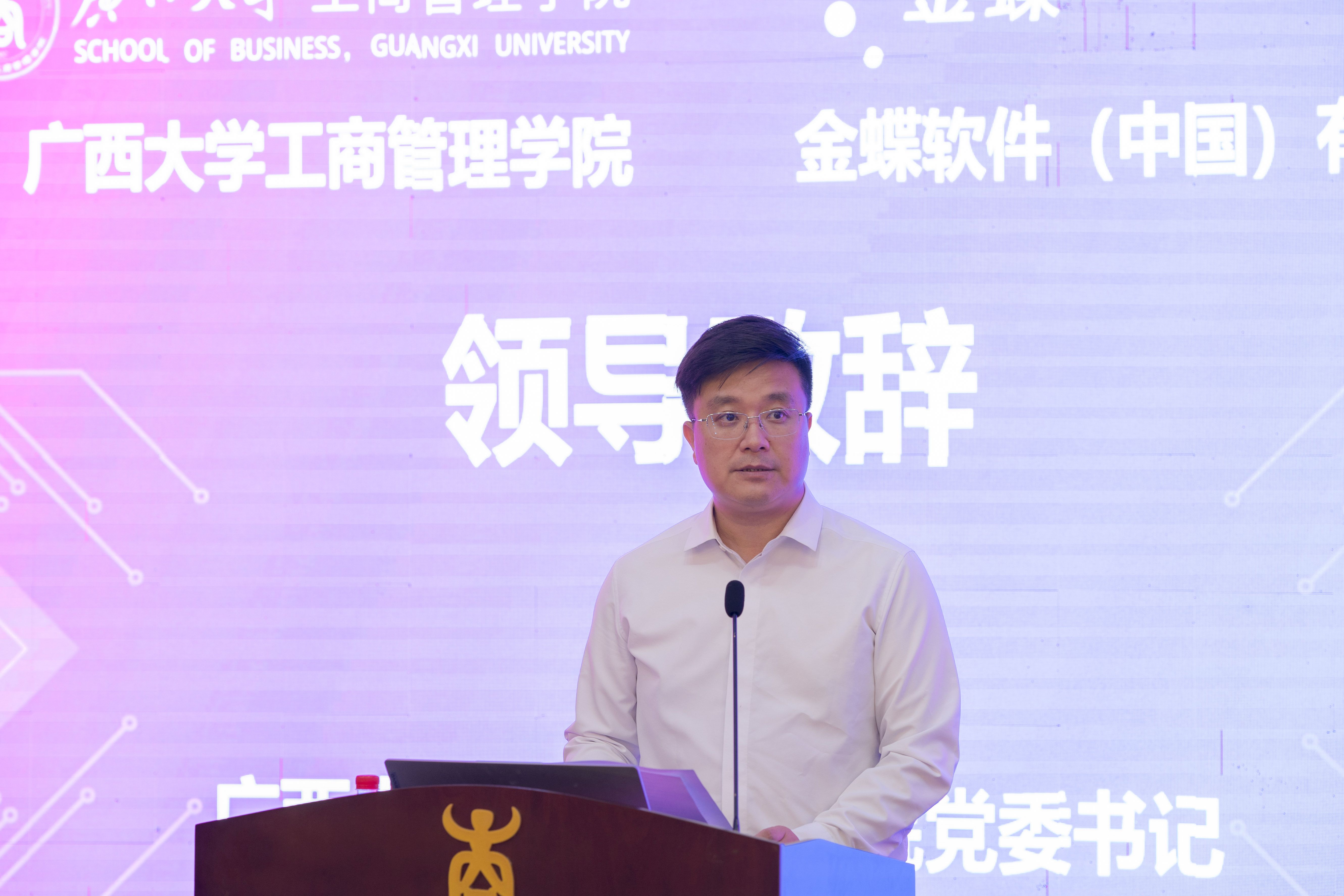 金蝶广西分公司市场部总监游阳、解决方案部高级顾问邓旭、院校业务经理韦晓春,工商管理公司党委办主任、团委书记马丽娟,会计与财务金融系师生代表80余人参加了仪式。