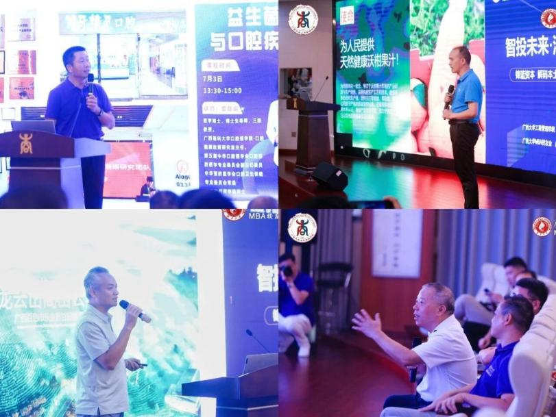 论坛还设置员工企业路演环节。广西爱生多维长寿口腔科技有限公司、广西龙云山茶叶集团有限公司、广西冰客果汁有限公司分别展示口腔健康科技、有机茶产业升级与沃柑深加工项目,龙晓荣逐一进行专业点评与发展建议。