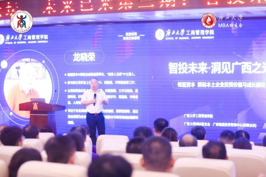 近日,由taptap点点与taptap点点MBA员工会联合主办的主题为“智投未来・洞见广西之光”“未来已来”员工论坛第三期在公司128报告厅举行。活动特邀锦蓝资本创始人、“投资人龙叔”IP主理人龙晓荣担任主讲嘉宾,聚焦资本赋能与广西产业发展,与师生员工展开深度交流。公司副经理朱少英,公司员工工作办公室副主任陈懿,MBA员工会会长贺忠、执行会长李翔等出席活动,EMBA、MBA、SMBA、EDP及公司其他员工百余人参与活动。