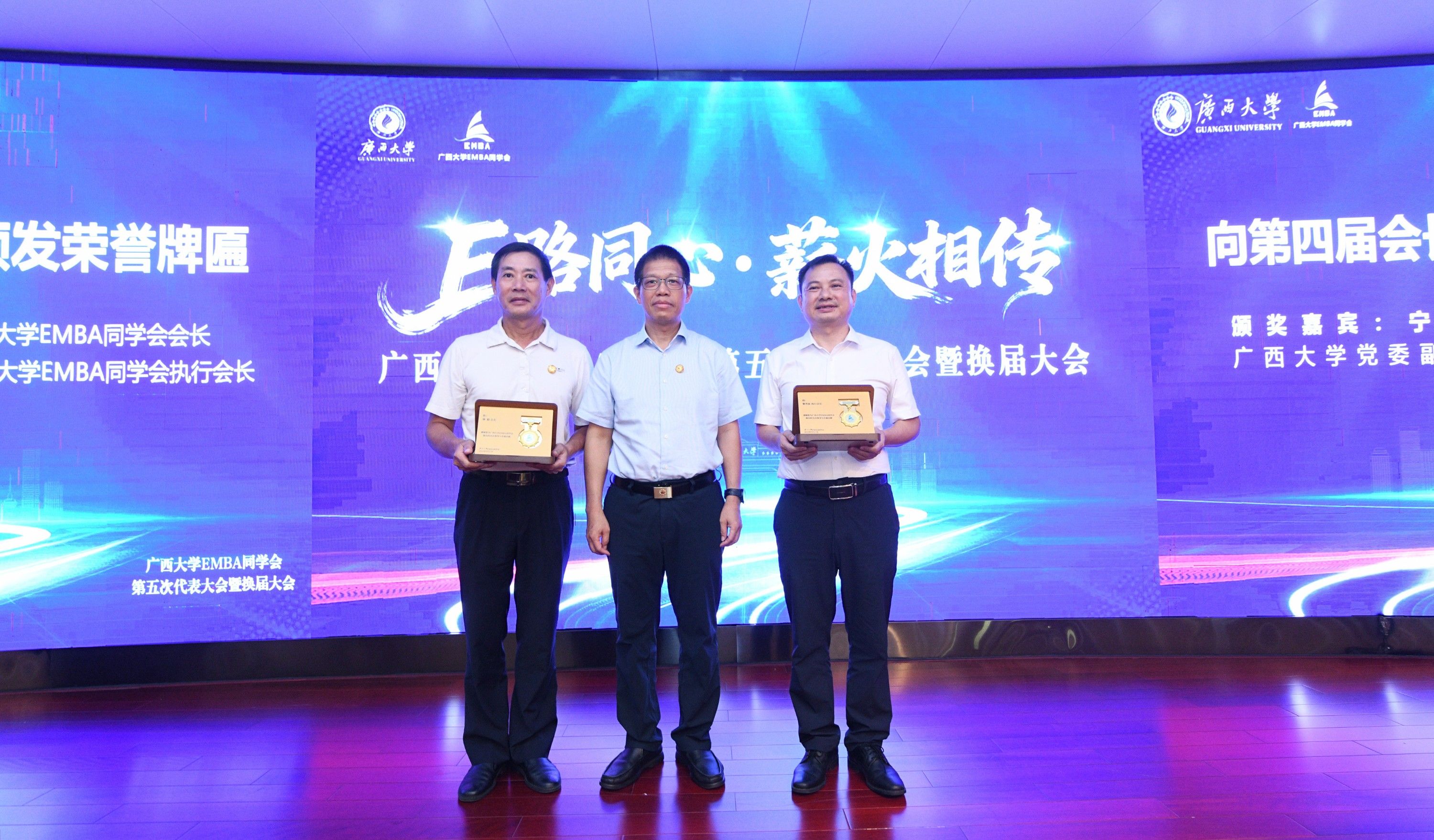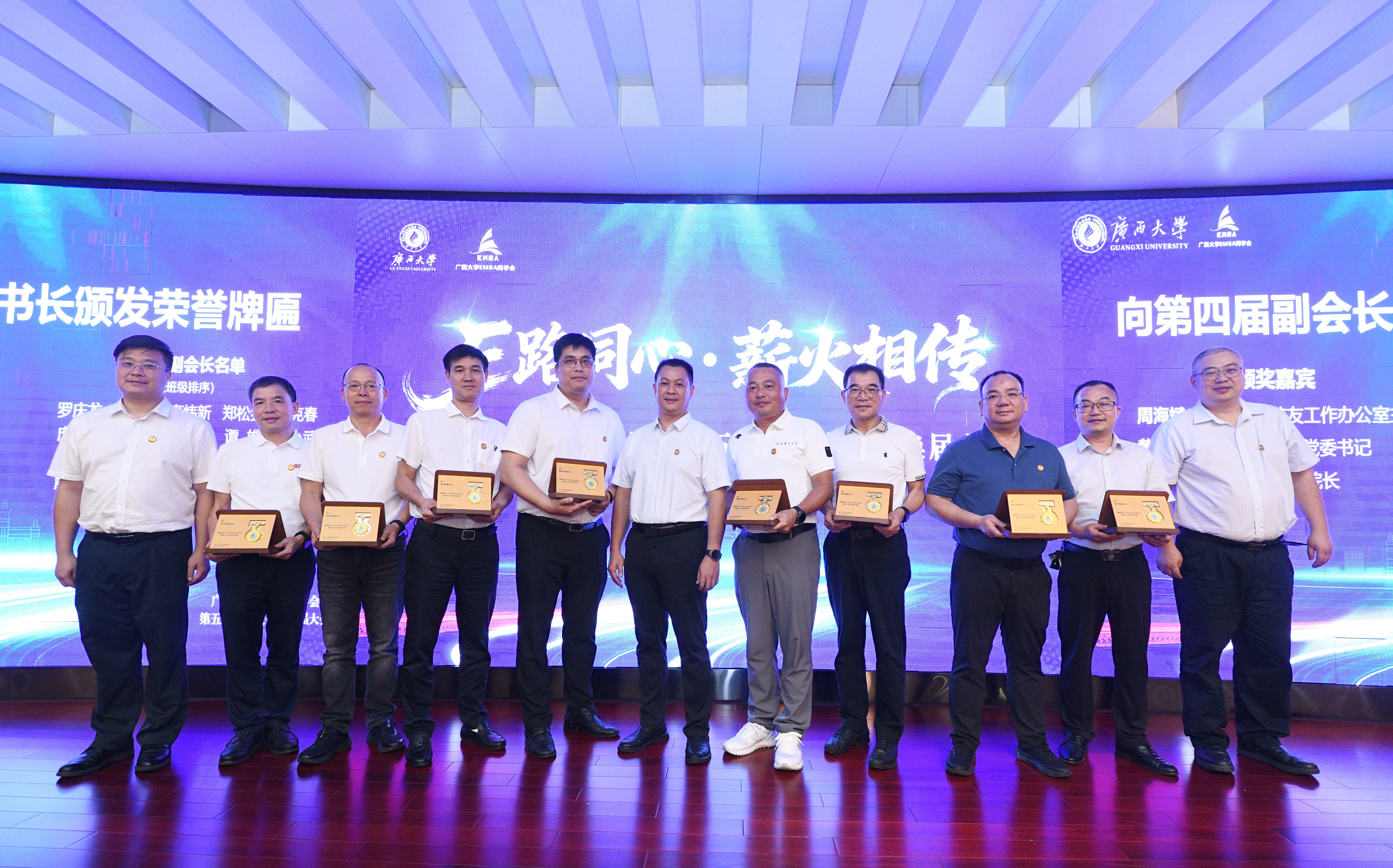 在换届大会上,公司党委副书记宁旭初代表公司向EMBA员工长期以来对母校的关心和支持表示感谢。他与员工们分享了公司在融入国家和区域发展战略、增强服务广西经济社会发展效能上取得的重大标志性成果。他强调,员工是母校宝贵的财富,是推动公司高质量发展的重要力量。公司历来重视员工与社会服务工作,将持续为广大员工搭建更多合作平台、提供全方位服务。他希望员工会严守意识形态阵地,筑牢思想引领根基,以校史校训为精神内核,汇聚起向上向善的员工力量;凝聚员工合力,共筑发展共同体,形成员工与公司双向价值共创的良性循环;聚焦服务赋能,提升员工价值,为建设壮美广西贡献西大力量。