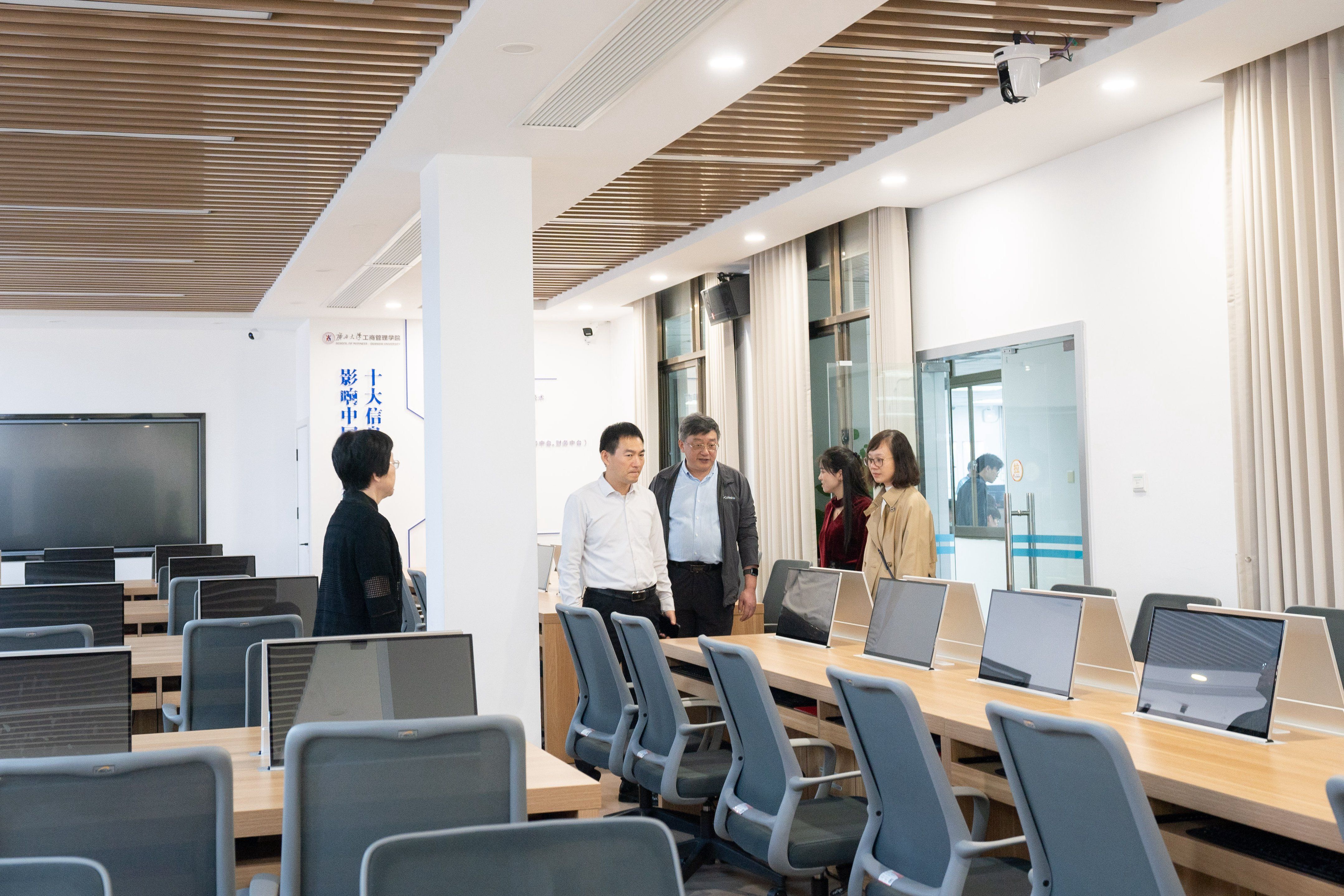 会前,赵锋一行在副经理廖东红的陪同下参观了公司研究生管理中心、智能会计与智慧财务实验室、教师工作间、研讨室、研究生自习卡座等办学环境和教学设施。