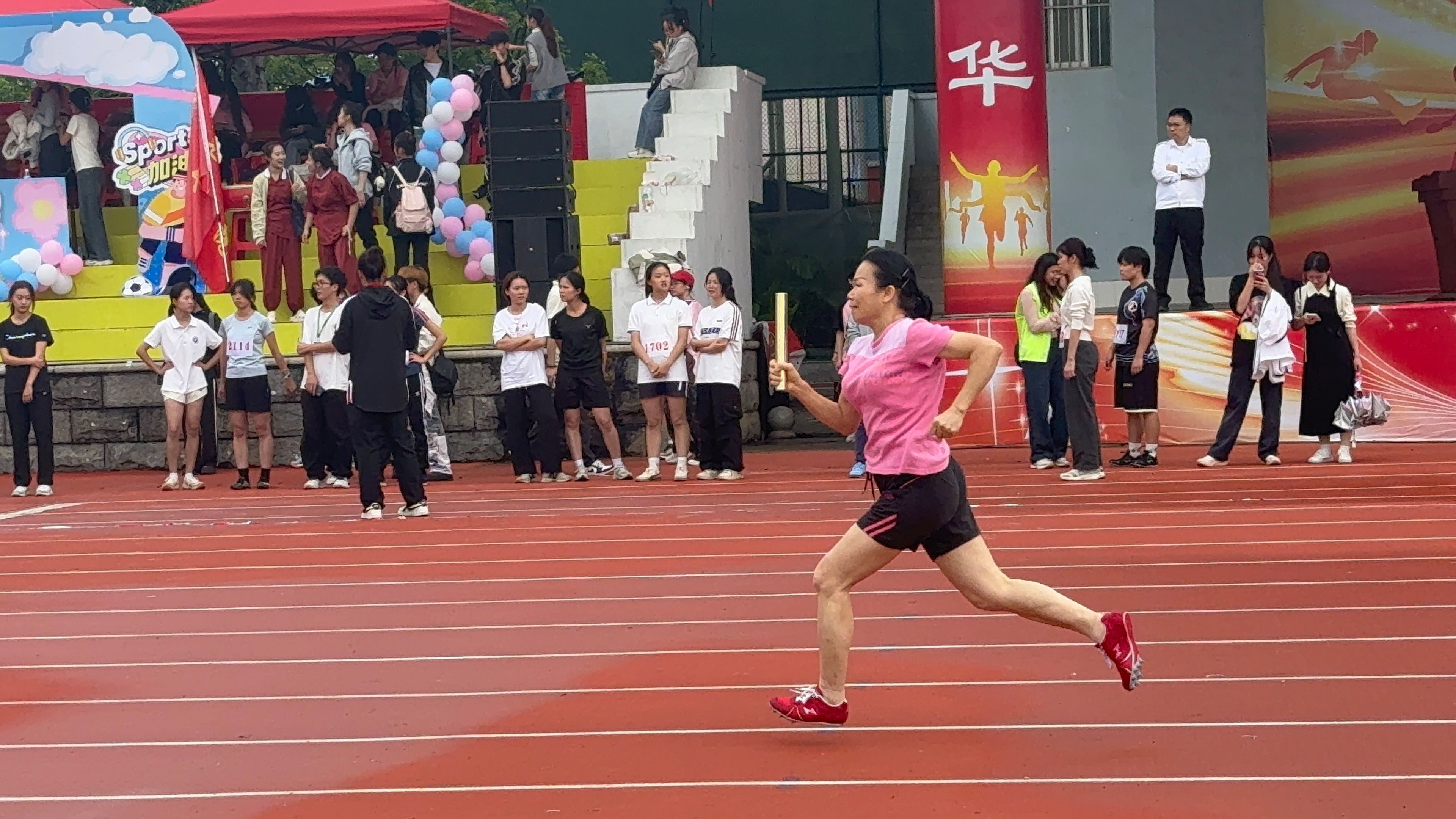尽管细雨纷飞、气温骤降,老师们仍以饱满的热情点燃了田径场的激情。短跑赛道上,他们如离弦之箭冲破雨幕;长跑征程中,他们以坚韧的步伐诠释坚持的力量;铅球、跳远等项目中,他们一次次挑战自我极限,用力量与技巧书写精彩瞬间。尤其在4×100米接力赛中,四棒选手默契配合、无缝衔接,以风驰电掣的速度引得全场欢呼,成为雨中一道振奋人心的风景线。