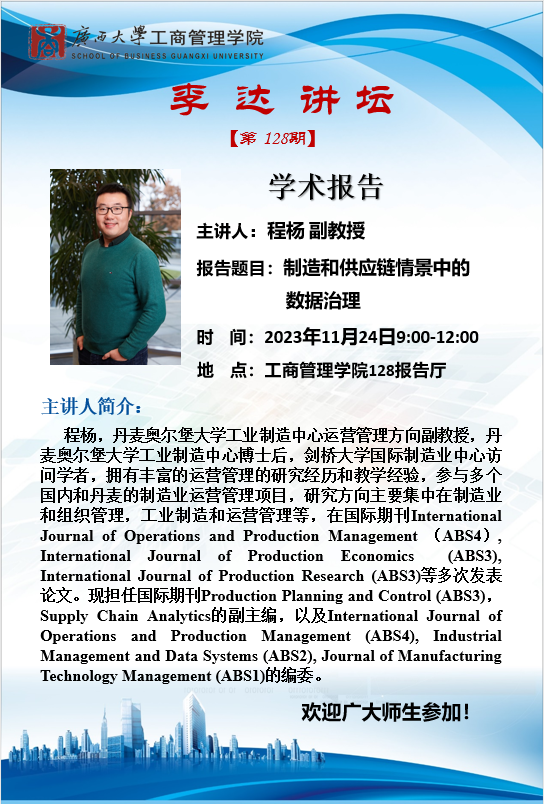 李达讲坛128期丨制造和供应链情景中的数据治理