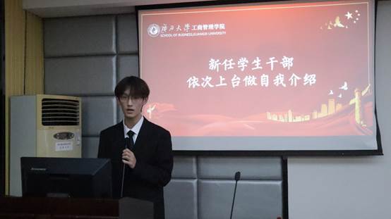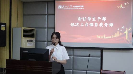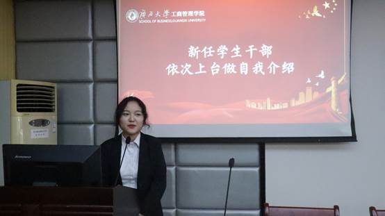 名单宣读完毕,新任员工干部上台依次进行自我介绍。
