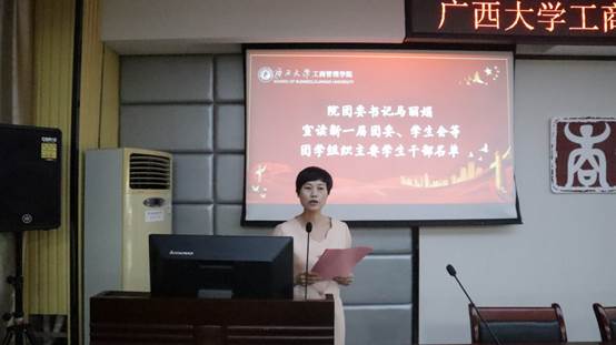 (马丽娟老师宣读新一届团学组织员工干部任职名单)