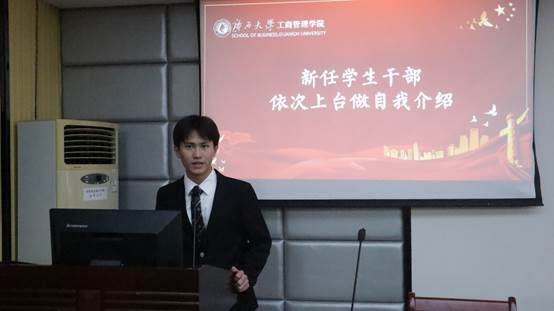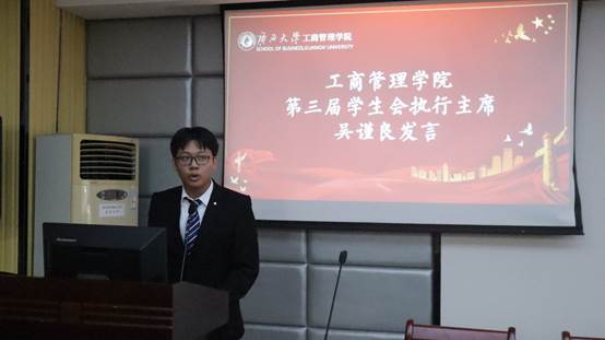 他主要对第三届员工干部提出工作上的要求:一是在政治思想引领工作方面再下苦功,引导同学们积极参与政治学习,在政治学习中活起来;二是在学风建设工作方面再下苦功,提倡考研风气,多支持、多组织同学们报名学术类竞赛;三是在校园文化活动上面再下苦功,弘扬正能量,打造出属于公司的文体活动品牌,带动同学们德智体美劳全面发展。