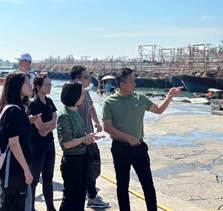 第二站是电建码头,电建码头是北海市的重要交通枢纽,促进北海与世界各地的贸易交流。石书记详细地介绍电建码头的运作和历史,实践团的师生们更加深切地体会到了北海这座城市的重要地位。