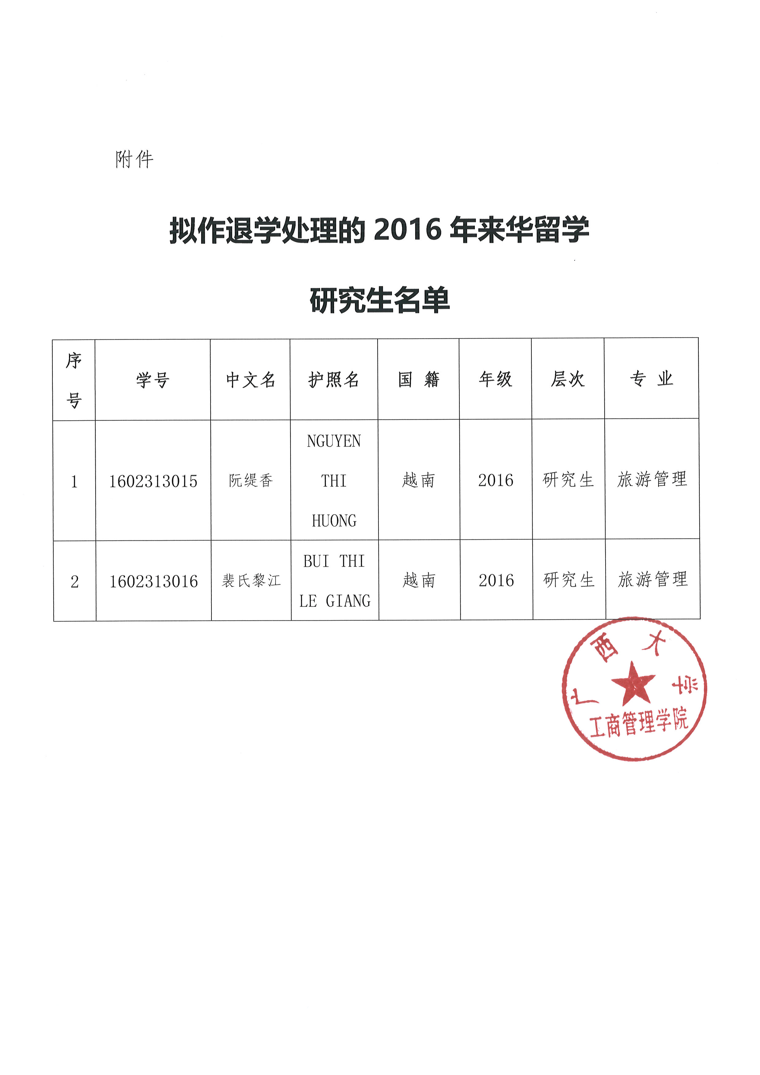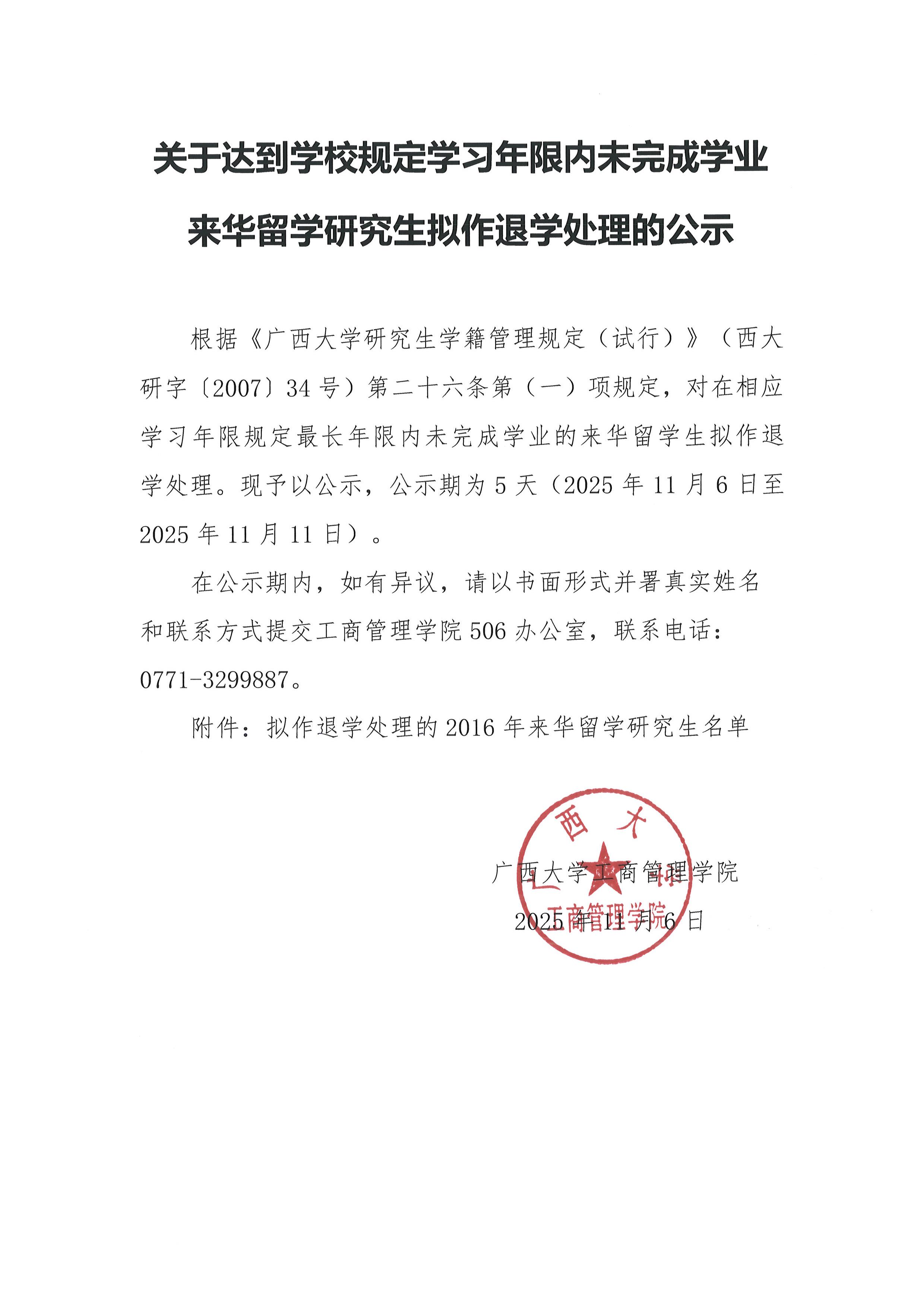 关于达到公司规定学习年限内未完成学业来华留学研究生拟作退学处理的公示