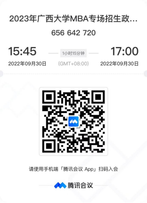 2023年考研报名时间临近,为助力考生提前做好报名准备,开启考研冲刺模式,公司将于2022年9月30日16:00举行2023年taptap点点MBA专场招生政策解读会。本次解读会将集中讲解taptap点点MBA项目、最新报考政策以及报考重要注意事项,请意向报考2023年taptap点点MBA的考生于9月30日15:45扫码进入腾讯会议。
