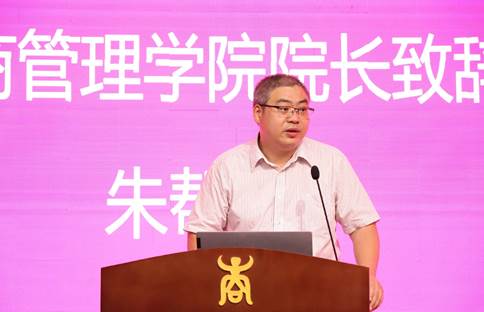 王萍主任代表全国工商管理专业学位研究生教育指导委员会秘书处、中国学位与研究生教育学会工商管理工作委员会诚挚地欢迎同学们加入MBA的大家庭。她简要介绍了我国MBA教育的发展情况,希望大家夯实系统商科知识、开拓管理创新思维、全面提升自身的管理能力和决策能力,成为广西地区、西南片区乃至全国经济社会发展的领军力量。