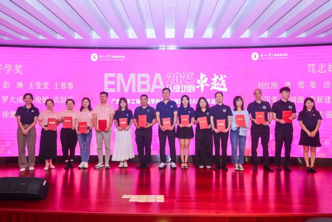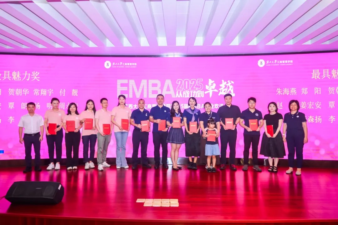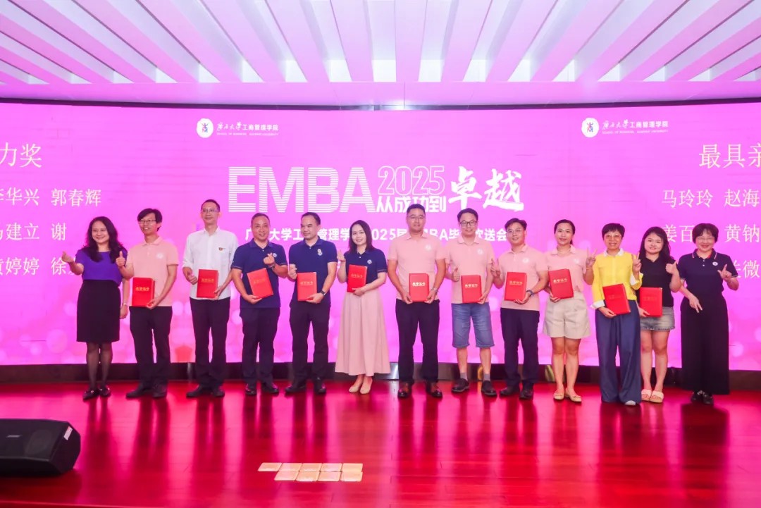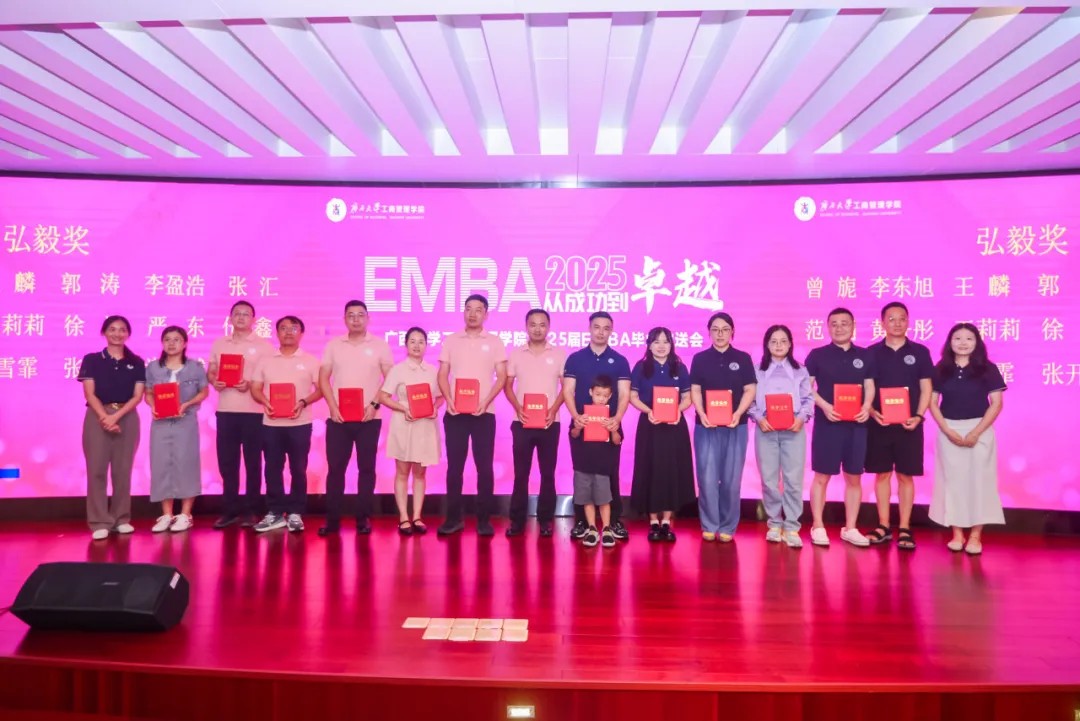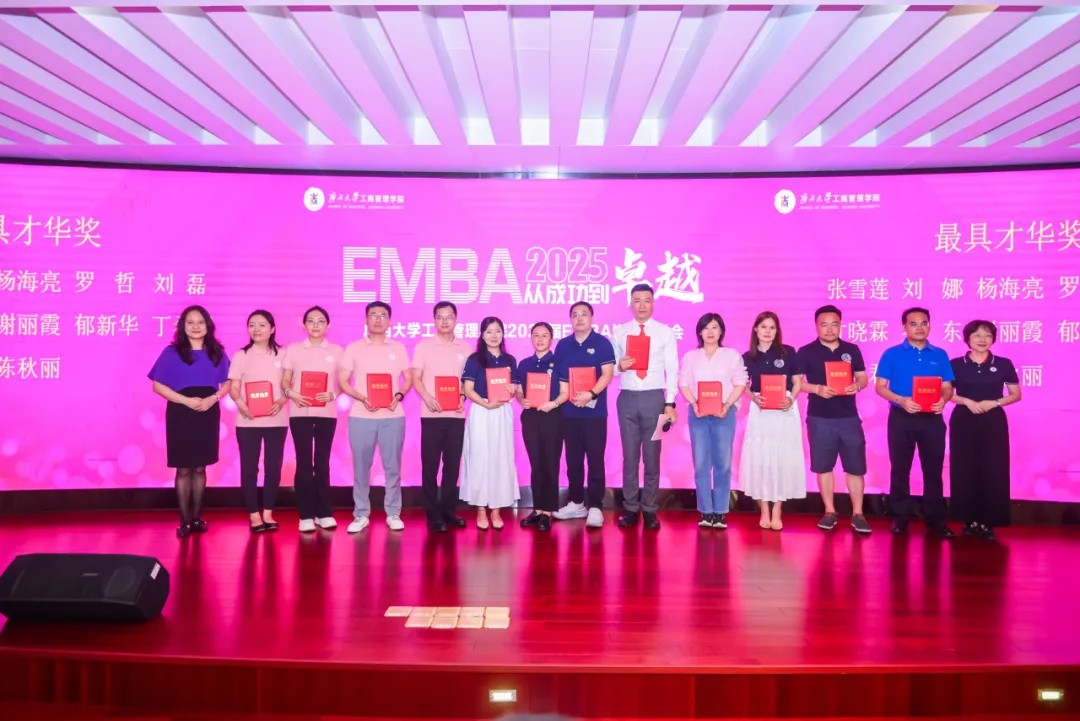 为同学们颁发的奖项有:EMBA优秀毕业生、EMBA优秀员工干部、最具亲和力奖、最具才华奖、最具魅力奖、笃行致远奖、踔厉奋发奖、博采众长奖、笃志好学奖、弘毅奖。
