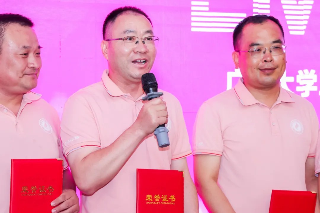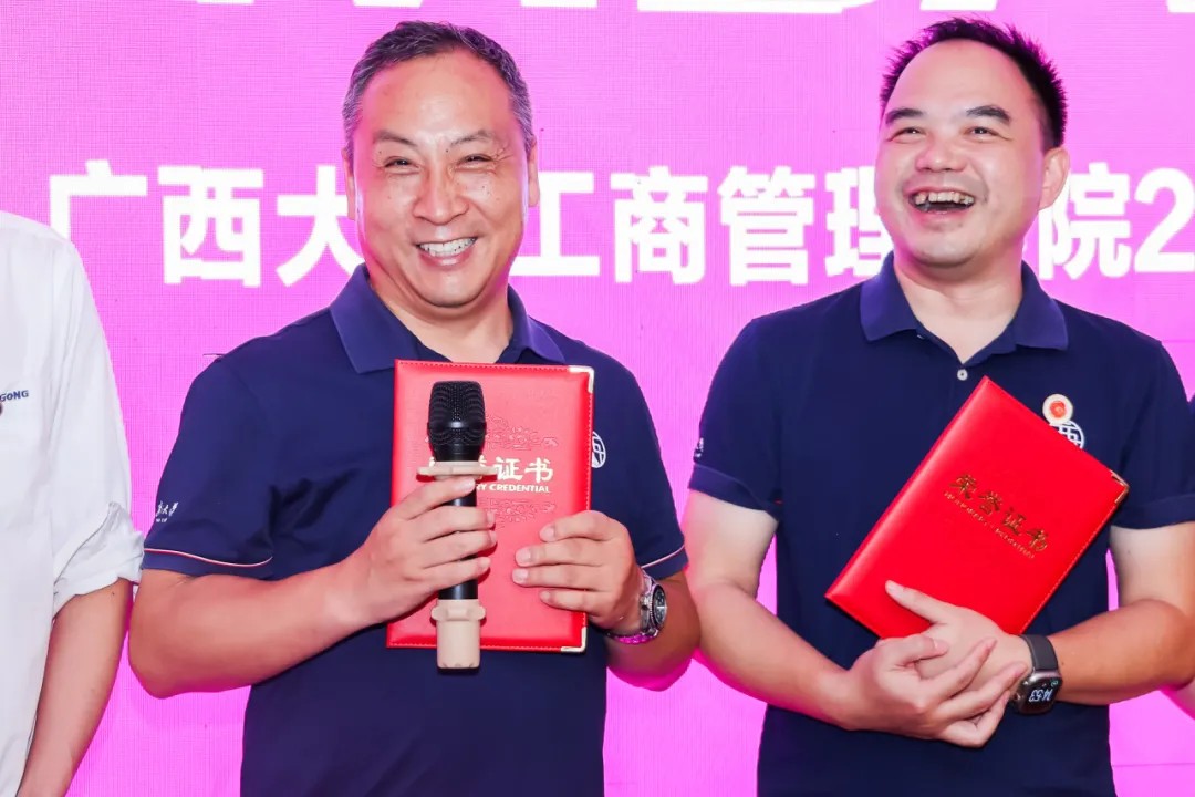 朱帮助经理代表公司向全体EMBA毕业生致以最诚挚的祝贺,他与同学们分享了三个贯穿西大96年历史的故事。第一个故事:马君武董事长的“最后一课”;第二个故事:榕江时期的“荔枝树经济学”;第三个故事:1984级员工的“边关商道”,三个故事带给同学们启示:当面临诱惑时,想想马董事长“不贪不吝”的座右铭;当遭遇挫折时,看看校史馆里西迁路上的煤油灯;当取得成就时,别忘了碧云湖畔“反哺桑梓”的碑刻。最后他祝福同学们前程似锦、一生幸福,欢迎同学们常回家看看。