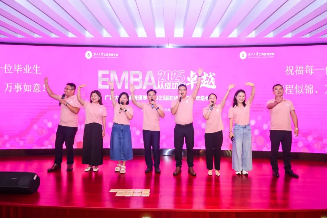 研究生管理中心主任叶映带领EMBA中心老师为同学们献上诗朗诵《我用西大的光,照你奔赴山海》,老师们用饱含深情的声音,将师长的期许与祝福化作诗行。愿同学们带着母校的荣光与师长的嘱托,在更广阔的天空续写新的篇章!
