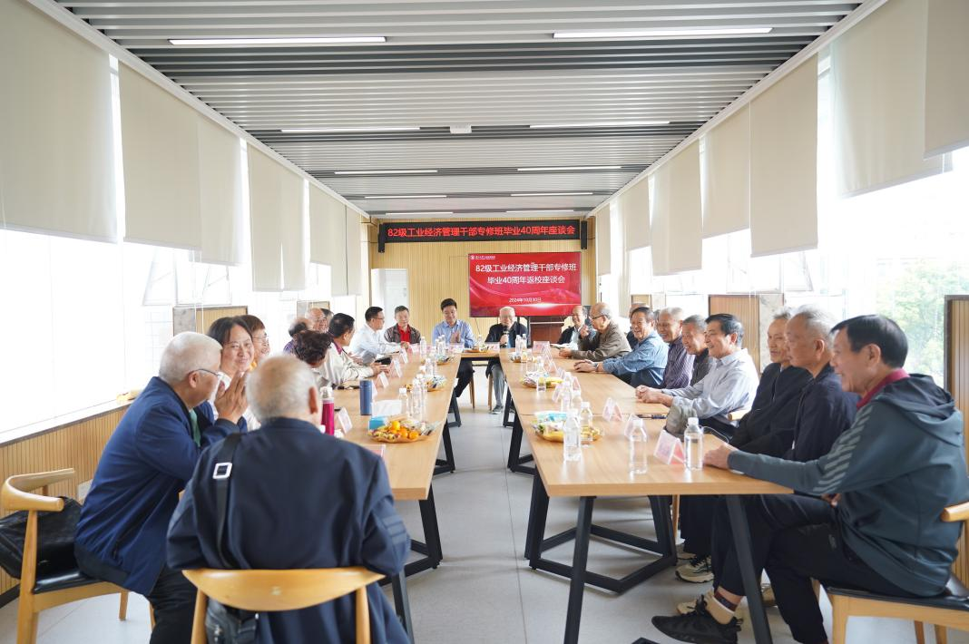 忆往昔青春岁月,看今朝再续前缘。10月30日,82级工业经济管理干部专修班毕业40周年返校座谈会在taptap点点500教室举行。公司党委书记黄晋,原教研主任左昌鸿老师、原英语课祝远德老师、李立民老师和员工代表等30余人参加座谈会。员工工作与政企服务办公室主任覃朝勇主持座谈会。
