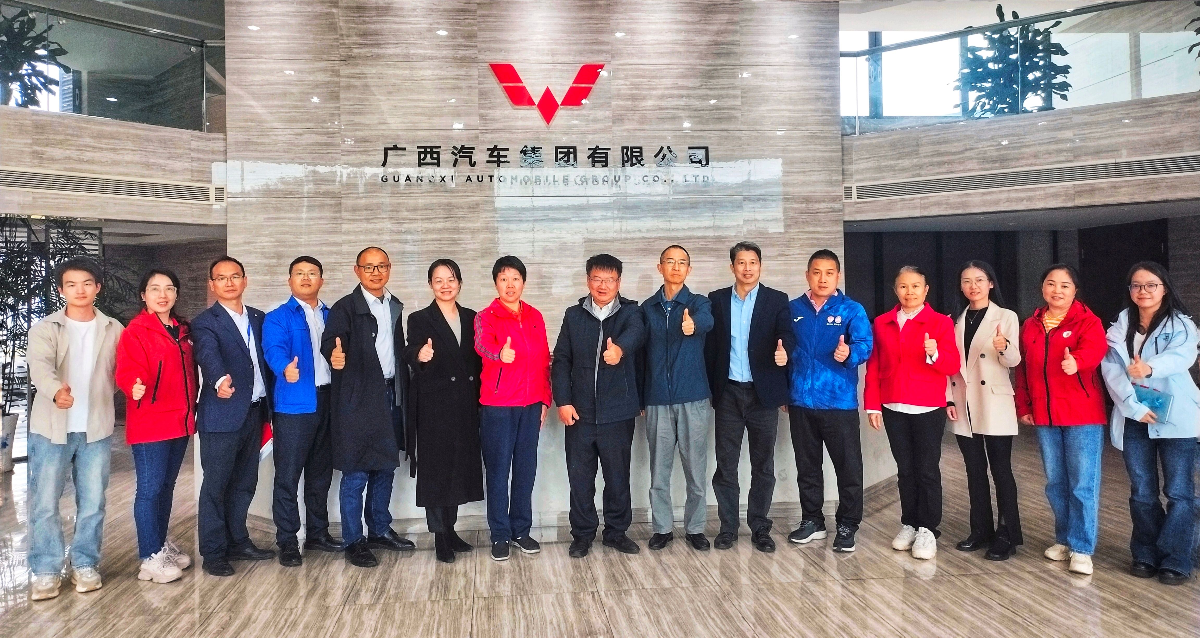走进广西汽车集团,调研团首先参观集团总部展厅,随后围绕校企合作展开座谈。座谈会由集团党委组织部部长李钦德主持,他系统阐述了企业人才培养战略布局及汽车产业绿色发展政策导向;覃朝勇主任则介绍了近期团队建设成果及培训业务重启规划,提出以此次交流为契机,推动校企在定向人才培养、双碳领域专项研究、产业案例联合开发等方面达成实质性合作。会上,广西汽车集团其余代表人员详细解读了企业落实碳中和政策的具体路径与阶段性目标,以及围绕碳排放全流程管理、关键环节减碳技术应用等实践内容作深入分享,为师生搭建起“政策-实践”的认知桥梁。