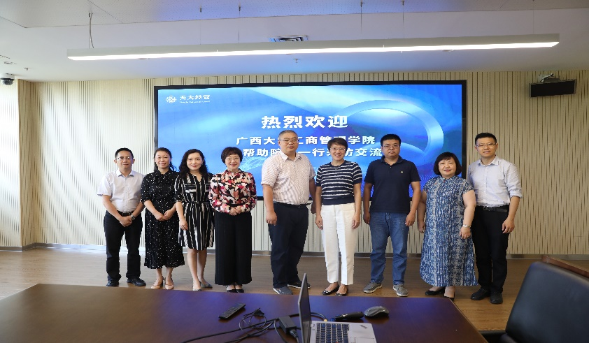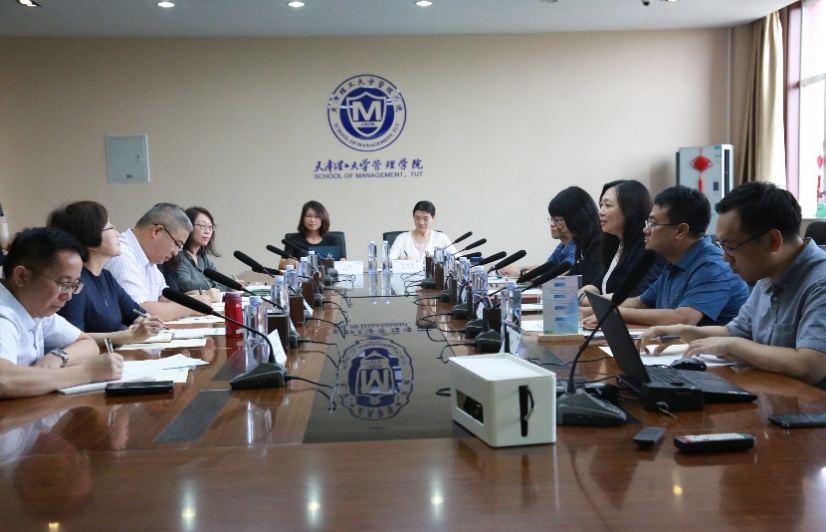 天津大学管理与经济学部杜慧滨主任、熊熊副主任、贾宁副主任、刘钰党委副书记,南开大学商公司孙跃书记、白长虹经理、田莉副经理,天津理工大学管理公司石娟书记、王京滨经理、曹昱亮副经理、孙晖主任等领导热情接待朱经理一行,双方就团队建设、团队队伍建设及行政管理等方面的先进经验,包括新商科改革、交叉学科推进、人才引进、激励机制、文化建设、招聘宣传等方面进行了深入且富有成效的交流。双方还就AACSB认证方面的先进经验,包括认证工作开展组织、流程与认证事务等方面进行重点交流。