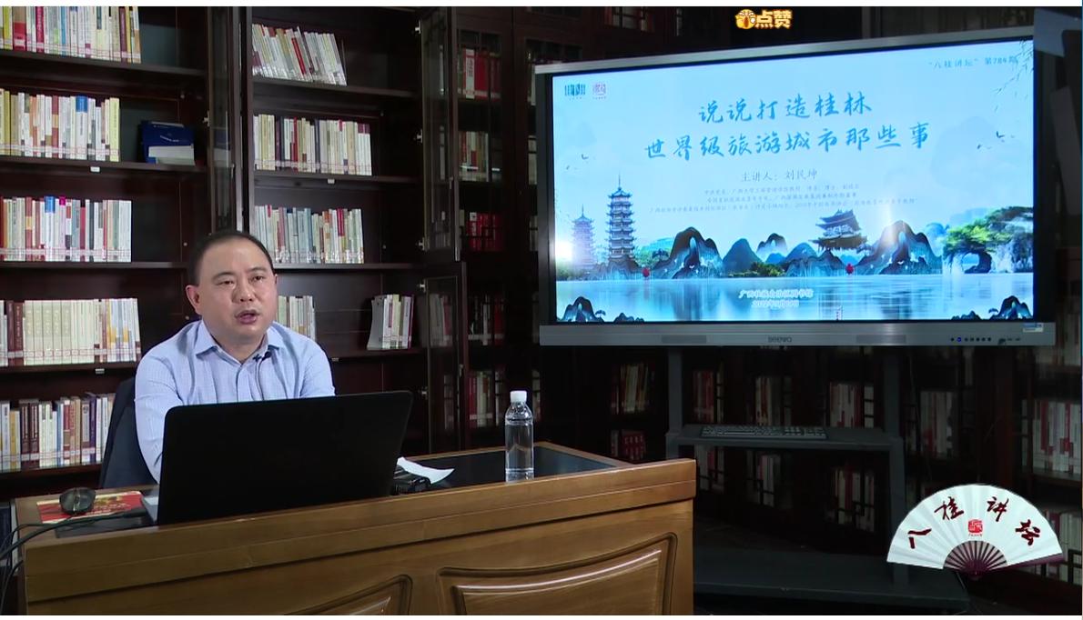 2022年5月14日上午,公司刘民坤教授应邀做客广西壮族自治区图书馆“八桂讲坛”,以“说说打造桂林世界级旅游城市那些事”为题进行了学术分享。由于受到疫情影响,本次讲坛以线上直播的方式进行。