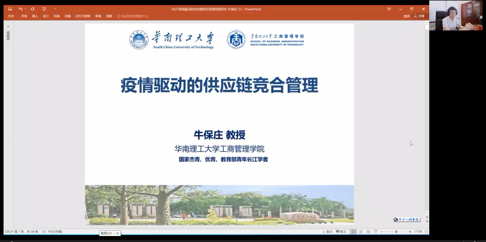 讲坛上,牛保庄教授首先从疫情背景下中国企业如何做出决策、优化空间和为客户提供高质量服务以保持竞争力等方面,展示了团队在学术研究中为企业开发安全、自洽的供应链模型。