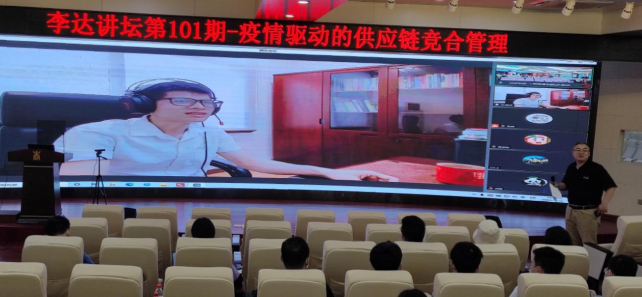 2022年5月10日下午,华南理工大学牛保庄教授应邀做客公司第101期“李达讲坛”,为师生们做主题为“疫情驱动的供应链竞合管理”的学术分享。讲坛在线上线下同时进行,约有师生100余人参加。公司经理朱帮助教授主持讲坛。