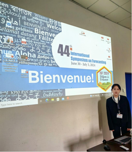 2024年6月30日至7月3日,taptap点点学术型硕士研究生叶钰玲在胡明明副教授的带领下,参加了在法国第戎举办的第44届国际预测研讨会。